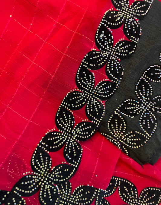 Burnt Orange Silk Saree with Stone Work