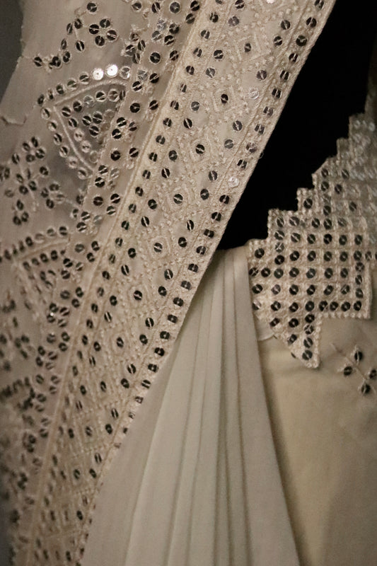 Chiffon Saree with Silver Mirror Work