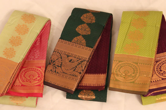 Light Green Temple Saree with Gold Zari Flowers